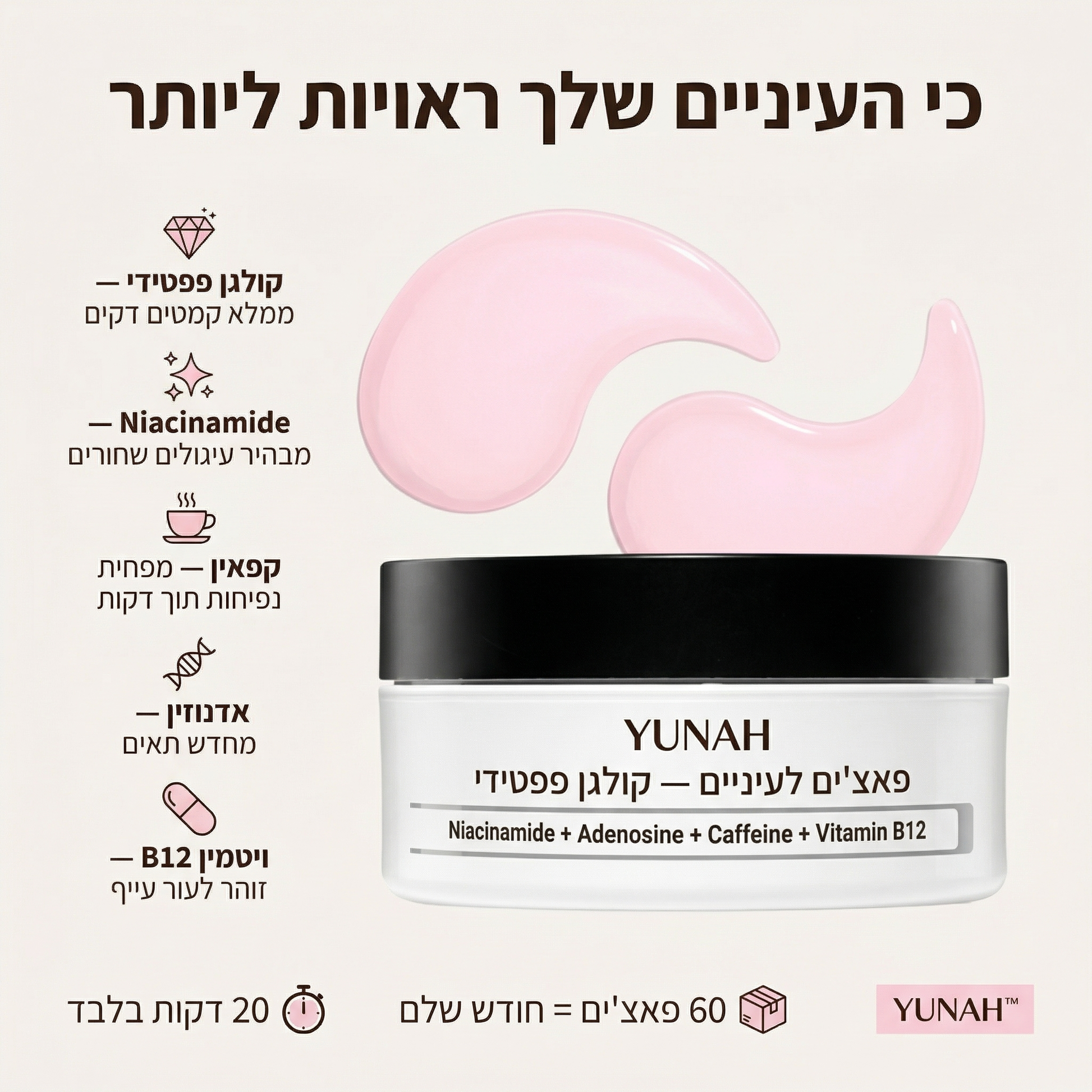 Yunah™ — פאצ'ים לעיניים קולגן פפטידי | לעיניים רעננות ללא נפיחות